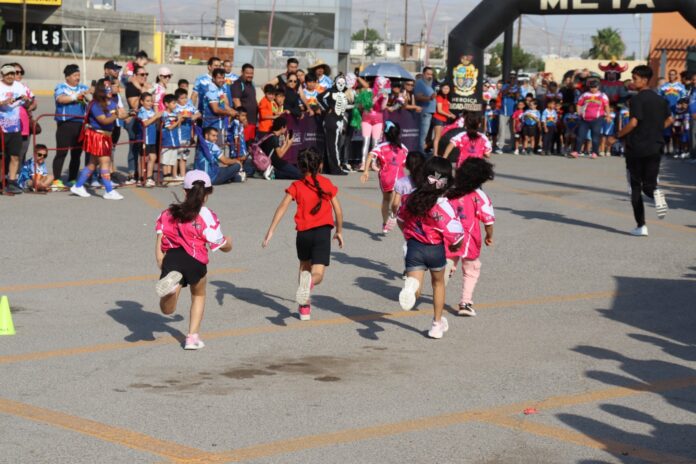 Ciudad Juárez, Chih .- La fiesta infantil, organizada por el Instituto Municipal del Deporte y Cultura Física de Juárez, se llevó a cabo en el estacionamiento del Centro Comercial Las Misiones a las 8:00 de la mañana; según su edad fueron las distancias que recorrieron.