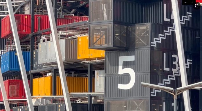Enseguida comenzaron a llegar los lotes de contenedores para comenzar a montar las piezas cual juego de legos. Estos ya venían preparados desde la fábrica para acelerar las obras. Las estructuras de acero se fueron ampliando.