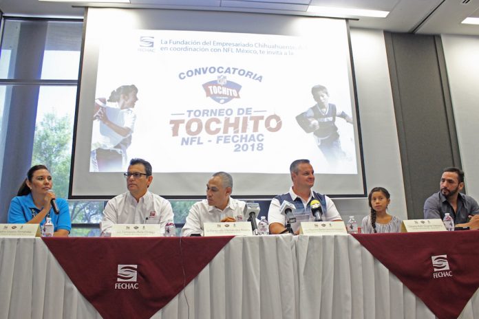Ciudad Juárez, Chih. – La Fundación del Empresariado Chihuahuense, A. C. (Fechac), en alianza con NFL México y el Gobierno Municipal de Juárez, convoca a los y las juarenses a participar en el Torneo de Tochito NFL – Fechac, a efectuarse del 8 de septiembre al 28 de octubre del presente año.