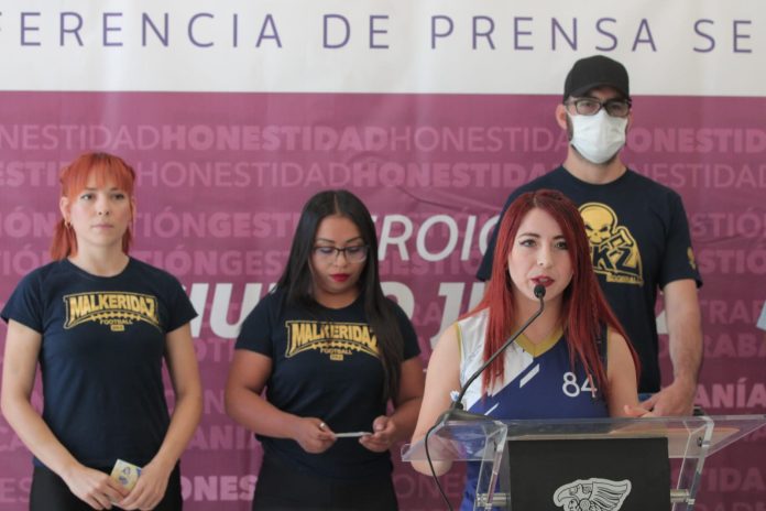 Ciudad Juárez, Chih .- En el marco de la conferencia de prensa semanal que ofrece el Presidente Municipal, Cruz Pérez Cuéllar, se llevó a cabo la presentación del equipo de fútbol americano Las Malkeridaz, grupo que representará a Ciudad Juárez en la Woman Football League (WFL).