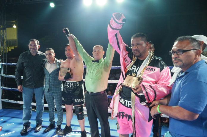 Durante la noche de boxeo , el juarense Marcos ” Papitas ” González ganó por desicion unanime al capitalino Josué “Chino” Veraza en la división de los ligeros.