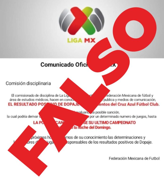 Deportes (ADN/ Alexis González) – Las redes sociales hacen nuevamente de las suyas, en esta ocasión reportan la circulación de un comunicado oficial de la Liga MX, en donde da a conocer que seis elementos del plantel celeste dieron positivo a dopaje.