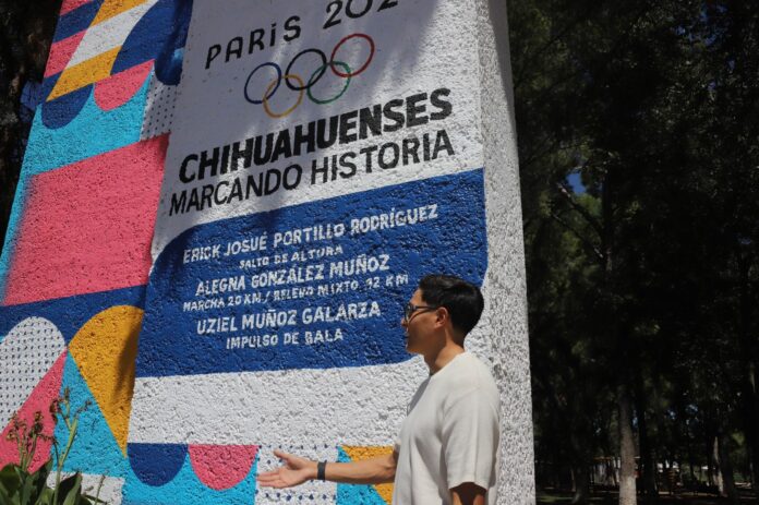 Tras su participación en la prueba de Salto de Altura de los Juegos Olímpicos París 2024, el atleta cuauhtemense Erick Josué Portillo Rodríguez plasmó su firma en el lienzo de los Olímpicos Chihuahuenses.
