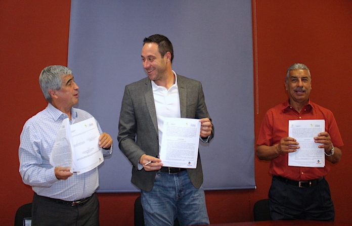 El convenio fue firmado por Juan Pedro Santa Rosa, director ICHD, Felipe Lozano de la Copa Telmex-Telcel y Josué Portillo, presidente de la Asociación Estatal de Futbol.
