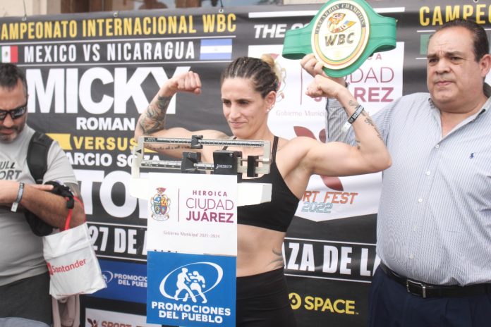 Se informó que Miguel “Micky” Román registró un peso de 59 kilos, el cual peleará en la división del peso súper pluma a 10 rounds contra el nicaragüense Marcos “El Toro “Sosa, quien tuvo un peso de 59 kilogramos; Diana “Bonita “Fernández pesó 52.4 kilogramos y Gabriela Bouvier, de Montevideo Uruguay un peso de 52.8 kilos, las cuales se disputarán el título internacional por el Peso Gallo a 10 rounds.