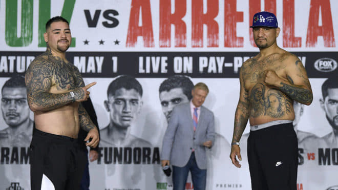 Deportes(ADN/Alexis González) – Andy Ruíz esta preparado para la pelea en contra de Chris Arreola, el mexicano ex campeón mundial de peso pesado, libro la báscula sin problemas al marcar 258 libras durante el pesaje.