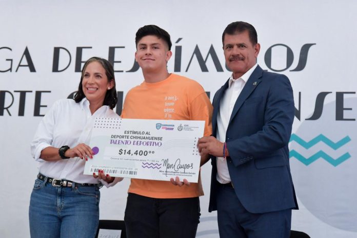 Chihuahua, Chih .- Como parte del programa de Rendimiento y Talentos Deportivos, el Gobierno del Estado entregó de manera simbólica cheques por un monto de 4 millones 590 mil pesos, a los deportistas acreedores al Estímulo Económico al Deporte Chihuahuense.