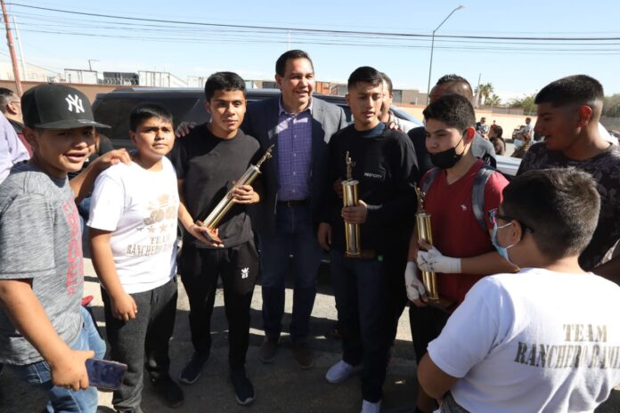 El Presidente Municipal encabezó la entrega de reconocimientos a los jóvenes que participaron en el encuentro boxístico que se desarrolló esta mañana en la colonia Azteca.