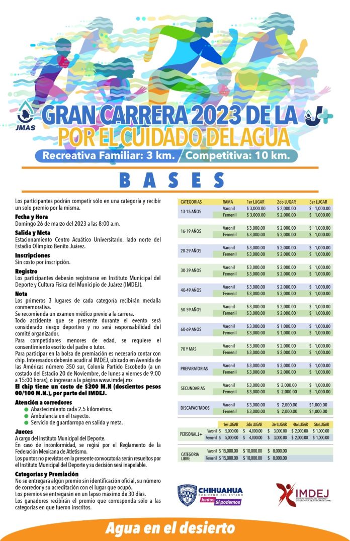 La JMAS hace convocatoria a la ciudadanía para participar en la Gran Carrera 2023 por el cuidado del agua, que se llevará a cabo el domingo 26 de marzo, para conmemorar el Día Mundial del Agua.