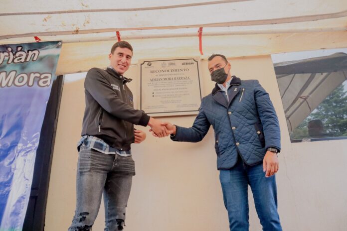 El Alcalde César Peña Valles develó una placa de reconocimiento al Medallista Olímpico Adrián Mora, quien obtuvo la medalla de bronce en los pasados juegos olímpicos de Tokio, asimismo entregó un reconocimiento por el logro obtenido e invitó a los deportistas parralenses a seguir su el ejemplo de la joven promesa.