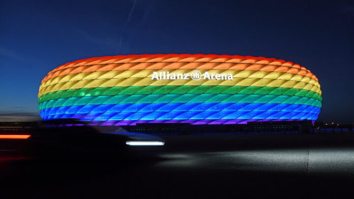 Este miércoles el mítico Alianz Arena programó para el enfrentamiento entre Alemania-Hungría luces arcoíris que resaltarían alrededor de todo el estadio.