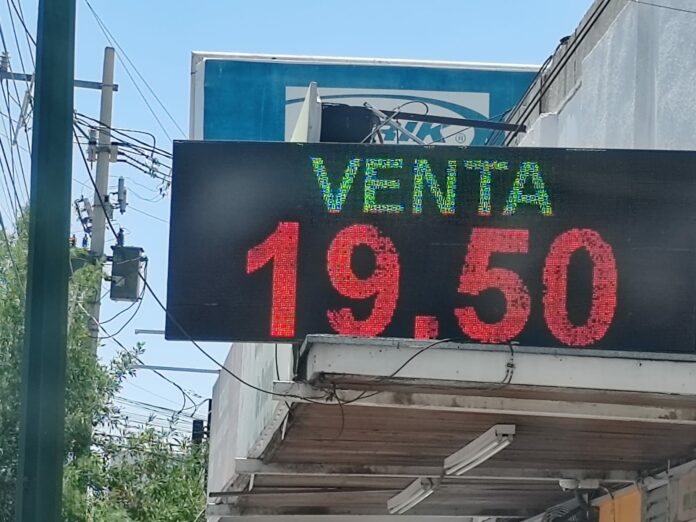 Ciudad Juárez, Chih (ADN/Arturo Hernández) – La cotización del dólar llegó este lunes a los 19.50 pesos por unidad, y de acuerdo a especialistas locales, esto es consecuencia de la posibilidad que se presente una recesión en los Estados Unidos.