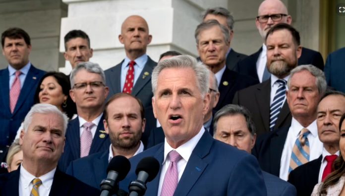 Estados Unidos (VOA) – El presidente de la Cámara de Representantes de Estados Unidos, Kevin McCarthy, dio a conocer un amplio paquete el miércoles que elevaría el límite de la deuda de la nación en 1,5 billones hasta el próximo año, al tiempo que impone una larga lista de prioridades republicanas, incluidos nuevos límites de gastos, requisitos de trabajo para los beneficiarios de la ayuda del gobierno y otros que seguramente serán no titulares para la Casa Blanca.