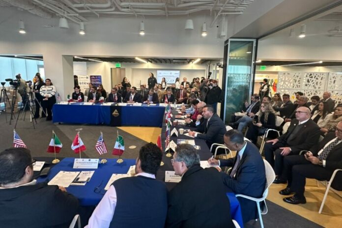 Ciudad Juárez, Chih. (ADN/Staff) – Este 15 de enero, la Cámara Nacional de Comercio, Servicios y Turismo (Canaco) de Ciudad Juárez, en conjunto con la Confederación de Cámaras de Comercio y Desarrollo Económico de El Paso, llevó a cabo el Foro Binacional de Negocios T-MEC México-Estados Unidos-Canadá. El evento reunió a representantes de los tres niveles de gobierno, legisladores y empresarios de ambos lados de la frontera, con el objetivo de diseñar estrategias de desarrollo económico para la región.