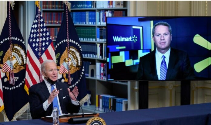 La Casa Blanca dijo que otros participantes en la reunión del lunes, tanto en persona como en forma virtual, incluyeron a los directores ejecutivos de Best Buy, Samsung North America, Qurate Retail Group, Todos Supermarket, Etsy, Mattel, CVS Health y Kroger.