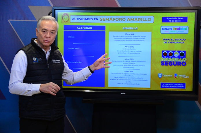 Chihuahua, Chih. – Presenta secretario de Salud, Eduardo Fernández, cambios en los aforos y actividades en operación con el semáforo Amarillo Seguro