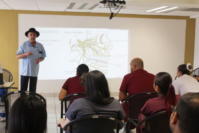Durante la capacitación los asistentes expusieron sus dudas que fueron resueltas por el especialista, quien ofreció su apoyo y orientación en los casos en que se requiera de procedimientos específicos para aminorar o desaparecer el dolor en los pacientes.