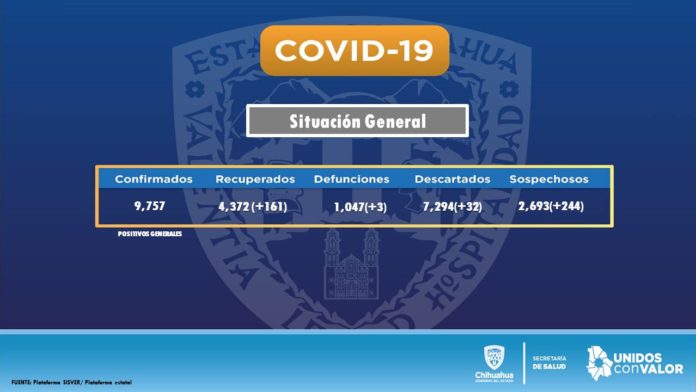 Chihuahua, Chih. – El director de la Secretaría de Salud en la Zona Norte, Arturo Valenzuela Zorrilla, informó que se agregaron 110 nuevos casos de COVID-19 para sumar un total en el estado de 9 mil 757, así como mil 047 defunciones con 3 nuevas.