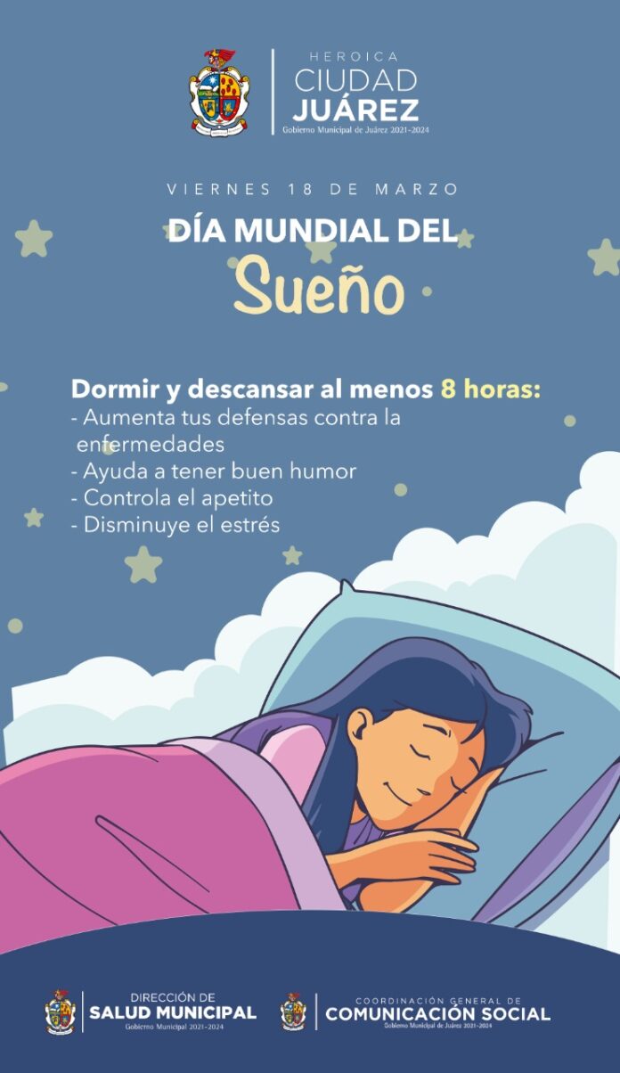 Ciudad Juárez, Chih .- Al respecto, la doctora Daphne Santana Fernández, directora de Salud, destacó la importancia de dormir cuando menos ocho horas al día, para disfrutar de un buen descanso que ayude a nuestra salud física y mental.