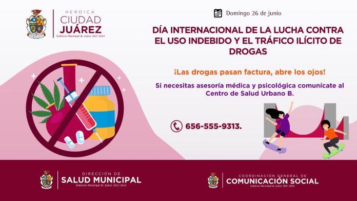 Como parte de la conmemoración del Día Internacional de la Lucha contra el Uso Indebido y el Tráfico Ilícito de Drogas, la Dirección de Salud exhorta a la comunidad juarense a buscar apoyo para superar los trastornos de consumo de sustancias en el Centro de Salud Urbano B.