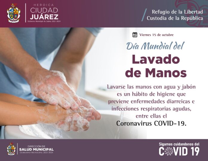 Ciudad Juárez, Chih .- Lo anterior fue informado por la directora de Salud, Daphne Santana Fernández, quien destacó que hoy se conmemora el Día Mundial del Lavado de Manos, por ello, el Gobierno Municipal 2021-2024 se suma a la labor para concientizar a la comunidad juarense sobre este importante hábito de higiene.