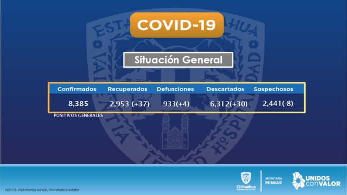 Chihuahua, Chih. – Al cierre del informe de las 19:00 horas del 02 de agosto, subió en 79 confirmados de COVID-19 para un total general de 8,385 en el estado de Chihuahua, así como 933 personas fallecidas.