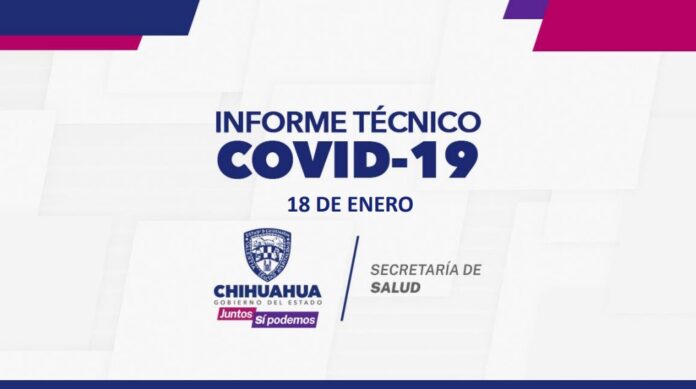 El Gobierno del Estado, a través de la Secretaría de Salud de Chihuahua, presenta este 18 de enero el reporte COVID-19, en el cual se registran 106 mil 312 (+99) personas confirmadas en la entidad por este padecimiento, 84 mil 378 (+15) casos recuperados, 93 mil 374 (+39) descartados y mil 792 (-77) casos sospechosos.