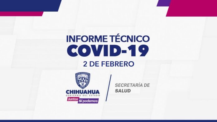 El Gobierno del Estado, a través de la Secretaría de Salud de Chihuahua, presenta este 2 de febrero el reporte COVID-19, en el cual se registran 120 mil 869 (+1,148) casos confirmados en la entidad, 96 mil 450 (+2,049) recuperados, 95 mil 982 (+285) descartados y 2 mil 224 (+64) sospechosos.