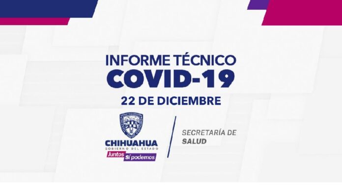 El Gobierno del Estado, a través de la Secretaría de Salud de Chihuahua, presenta este 22 de diciembre el reporte COVID-19, en el cual se registran 90 mil 977 (+291) personas confirmadas en la entidad por este padecimiento, 77 mil 710 (+360) casos recuperados, 87 mil 257 (+350) descartados y 1,133 (+29) casos sospechosos.