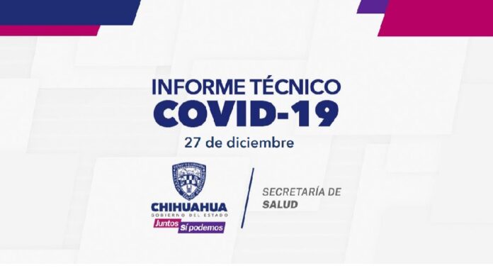 El Gobierno del Estado, a través de la Secretaría de Salud de Chihuahua, presenta este 27 de diciembre el reporte COVID-19, en el cual se registran 91 mil 808 (+254) personas confirmadas en la entidad por este padecimiento, 78 mil 466 (+319) casos recuperados, 88 mil 126 (+218) descartados y mil 228 (+46) casos sospechosos.