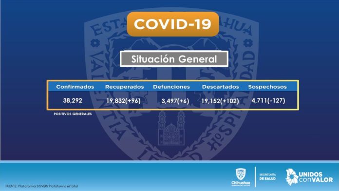 Chihuahua, Chih. – La Secretaría de Salud dio a conocer que se confirmaron seis defunciones (tres en Juárez y tres en la capital), así como 172 casos de contagios por COVID-19 en las últimas 24 horas.