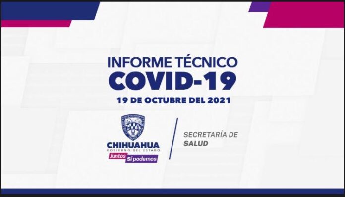 El Gobierno del Estado, a través de la Secretaría de Salud de Chihuahua, presenta este 19 de octubre el reporte COVID-19, en el cual se registran 79 mil, 920 (+50) personas confirmadas en la entidad por este padecimiento, 69 mil 373 (+123) casos recuperados, 72 mil 542 (+40) descartados y 753 (-4) casos sospechosos.