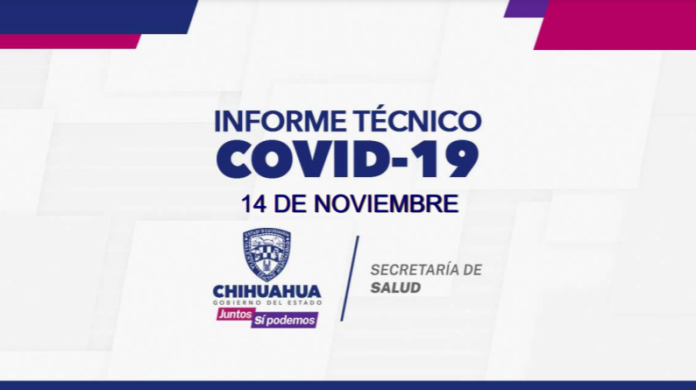 El Gobierno del Estado, a través de la Secretaría de Salud de Chihuahua, presenta este 14 de noviembre el reporte COVID-19, en el cual se registran 83 mil 426 (+172) personas confirmadas en la entidad por este padecimiento, 71 mil 764 (+63) casos recuperados, 77 mil 952 (+240) descartados y 860 (+15) casos sospechosos.