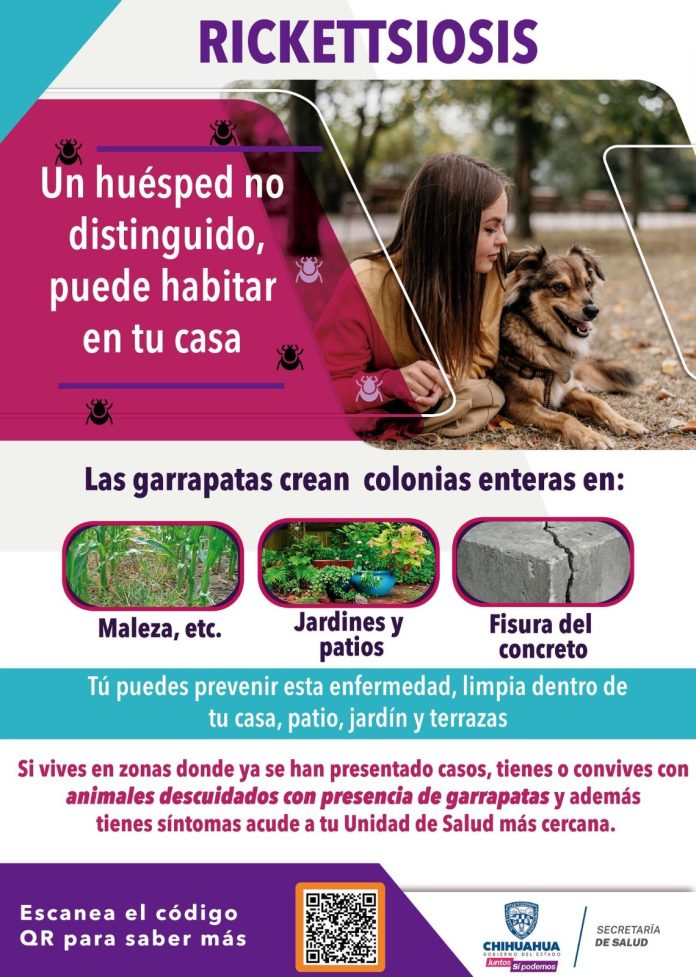 La Secretaría de Salud exhorta a la población a llevar a cabo acciones de prevención ante la rickettsiosis, como limpieza del hogar, patios y jardines, así como cuidados pertinentes en mascotas e higiene personal en los integrantes de la familia.