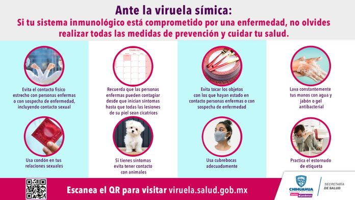 Chihuahua, Chih .- La Secretaría de Salud informa sobre la situación actual de casos de viruela símica en la entidad, y exhorta a la ciudadanía a llevar a cabo las medidas de prevención para evitar su transmisión en la comunidad.