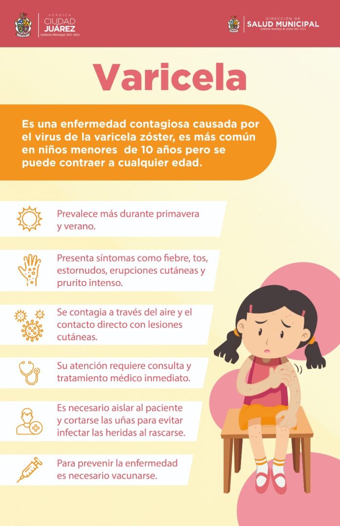 Ciudad Juárez, Chih .- La directora de Salud, Daphne Santana Fernández, informó que la varicela es una enfermedad contagiosa que es causada por el virus de la Varicela Zóster, y aún que es más común en niños menores de 10 años, puede ser contraída por una persona de cualquier edad.