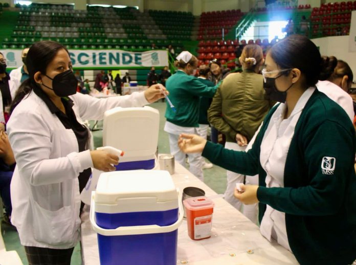 Ciudad Juárez, Chihuahua (ADN / Martín Orquiz) – En el marco de la participación del personal del Instituto Mexicano del Seguro Social (IMSS) en la jornada de vacunación para infantes de 5 a 11 años de edad en Ciudad Juárez, se aprovechará la infraestructura y los equipos de vacunación para inmunizar contra la Influenza estacional a toda la población de riesgo derechohabiente o no.