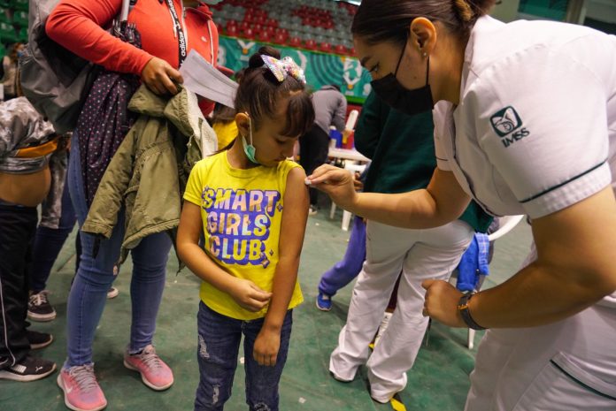 Ciudad Juárez, Chihuahua (ADN / Martín Orquiz) – La jornada de vacunación infantil se extenderá un día más, al jueves 10 de noviembre, por lo que personal de Bienestar hizo un llamado a la ciudadanía a que lleve a las niñas y niños de 5 a 11 años a recibir la inmunización contra el SARS-CoV-2.