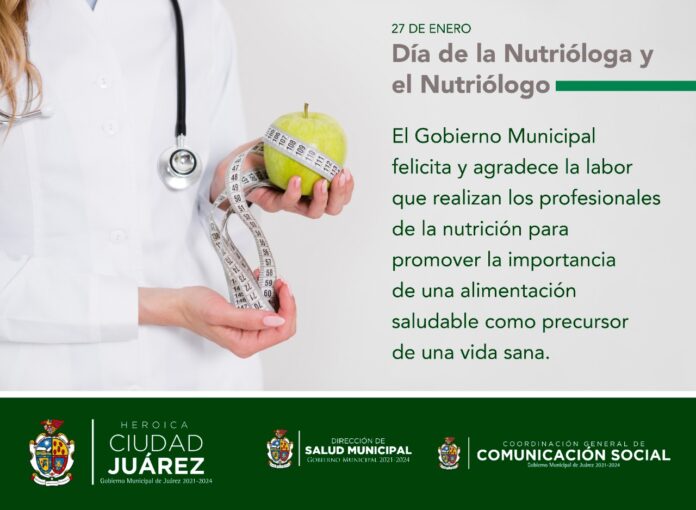 Ciudad Juárez, Chih .- En el marco de la conmemoración del Día del Nutriólogo, la Administración 2021-2024 felicita y agradece la labor que realizan todos los profesionales de la nutrición para promover la importancia de una alimentación saludable como precursor de una vida sana.