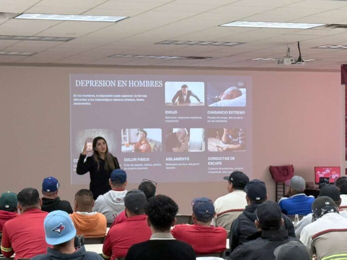 Ciudad Juárez, Chih. (ADN/Staff) – En un esfuerzo por atender el bienestar emocional de los hombres en el entorno laboral, el equipo de psicología del Centro de Salud Urbano B impartió el taller titulado “La depresión detrás del rol de proveedor”, dirigido al personal masculino de una empresa refresquera de Ciudad Juárez. La iniciativa forma parte de las acciones impulsadas por el Gobierno Municipal para promover la salud mental en sectores tradicionalmente desatendidos.