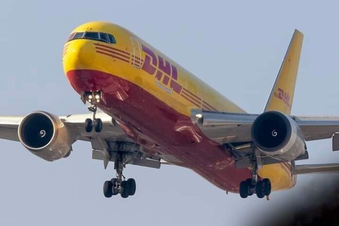 El avión de la empresa DHL, fue recibido en la terminal uno del aeropuerto mexicano.