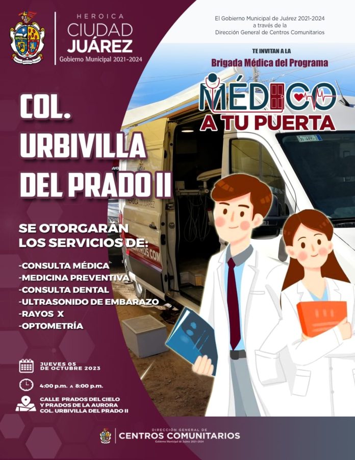 La Dirección General de Centros Comunitarios invita a los vecinos de Urbivilla del Prado II a recibir servicios médicos gratuitos hoy por la tarde.