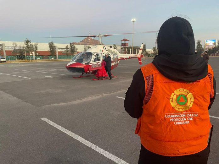 Chihuahua, Chih. (ADN/Staff) – La Coordinación Estatal de Protección Civil (CEPC) y otras autoridades colaboran para llevar a cabo un operativo de aeroevacuación de una paciente embarazada. El objetivo es trasladarla a un hospital para recibir atención médica especializada debido a su diagnóstico de preeclamsia.