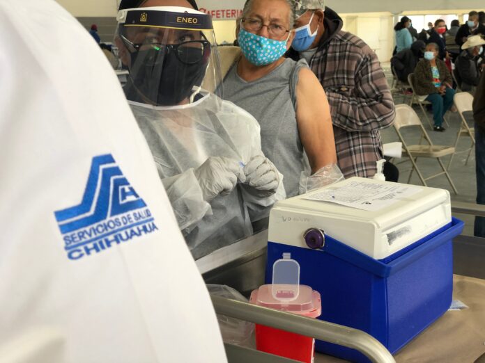 Ciudad Juárez, Chih. – Jurisdicción Sanitaria II, procedió a aplicar la vacuna contra Covid-19 a la población mayor de 60 años de edad del Valle de Juárez.