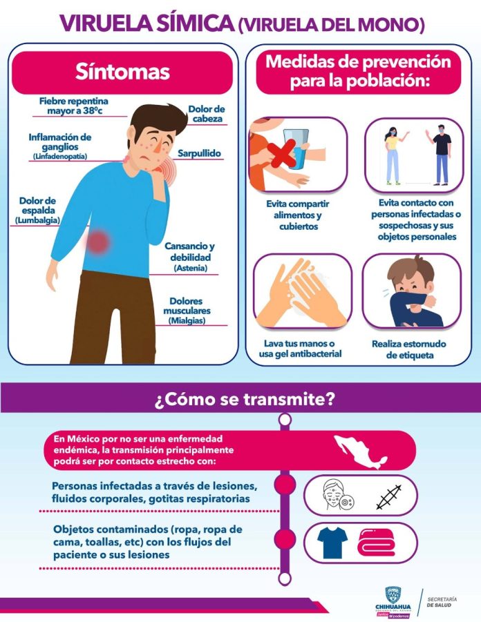 El funcionario estatal hizo un llamado a la comunidad en general, para que continúe con la práctica de las medidas de prevención establecidas por el sector Salud, para evitar la transmisión de este padecimiento entre las personas, ya que la viruela símica es una enfermedad infecciosa y endémica en los países de África Central, que en México se llega a transmitir por contacto estrecho o directo con las personas con esta sintomatología.