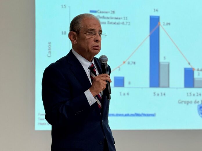 El director del Distrito de Salud II Juárez, Rogelio Covarrubias, presentó una ponencia titulada “Panorama Epidemiológico de la Rickettsia”, donde analizó los casos reportados y las edades de las personas afectadas en Ciudad Juárez. Covarrubias enfatizó el alto riesgo que representa el flujo constante de personas entre México y Estados Unidos, especialmente por la presencia de garrapatas y otros vectores que transmiten la enfermedad.