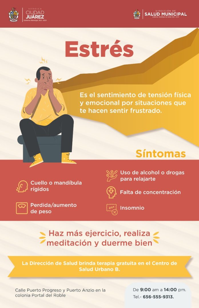 Ciudad Juárez, Chih .- Con el propósito de promover el cuidado de la salud mental entre la ciudadanía, el Gobierno Municipal emitió una serie de recomendaciones para que las personas que sufren de estrés puedan hacer frente a los problemas emocionales.