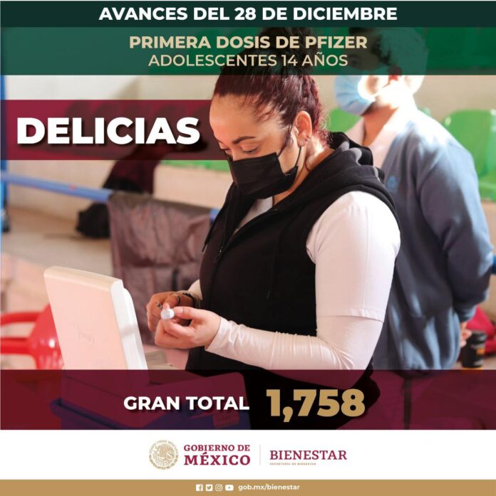 Ayer, 28 de diciembre, en el Municipio de Delicias se administraron 1 mil 758 inyecciones a personas de 14 años, informó la dependencia a través de un comunicado.