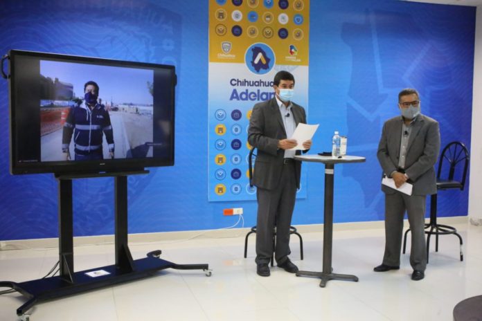 Acompañado en el estudio de grabación, por Sergio Madero Villanueva, director general del Fideicomiso de Puentes Fronterizos de Chihuahua, el mandatario detalló que esta inversión es independiente de los 196 millones de pesos destinados al proyecto de modernización tecnológica del sistema de recaudo y del control de tráfico inteligente que actualmente se lleva a cabo como parte del proceso de mejoramiento en los distintos puentes internacionales.