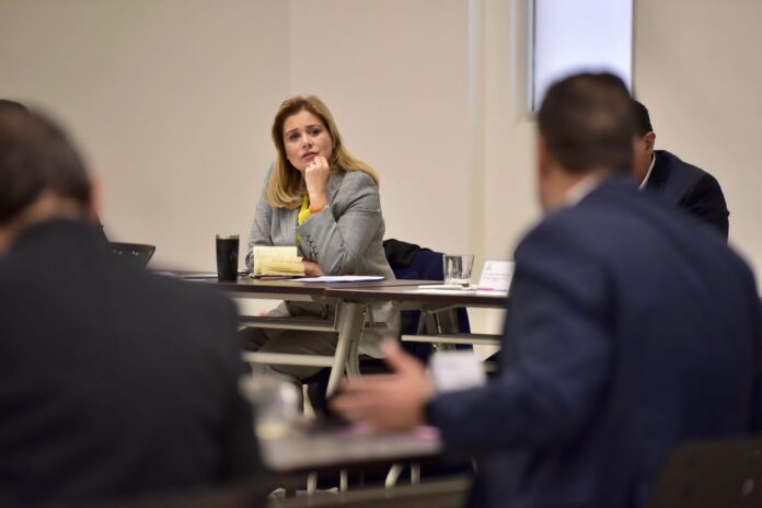 Ciudad Juárez, Chih .- En compañía del secretario general de Gobierno, César Jáuregui; el fiscal general del Estado, Roberto Fierro; el alcalde de Ciudad Juárez, Cruz Pérez Cuéllar y representantes de la Guardia Nacional y la Fiscalía General de la República, la gobernadora Maru Campos tuvo la oportunidad analizar los hechos más relevantes ocurridos en la frontera, durante la última semana.